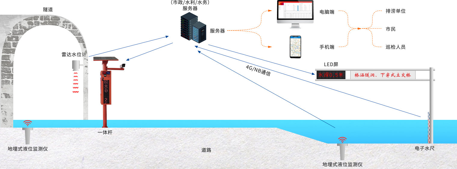 产品特点: 1、不受现场地形空间限制,可以将设备装在恰当的积水点,采集最有效的点位数据 2、探测端采用埋地式安装,不用建设立杠、靠壁等工程,减少施工成本 3、集成多传感器,采集液位数据不受车辆、淤泥、波浪等外在干扰
