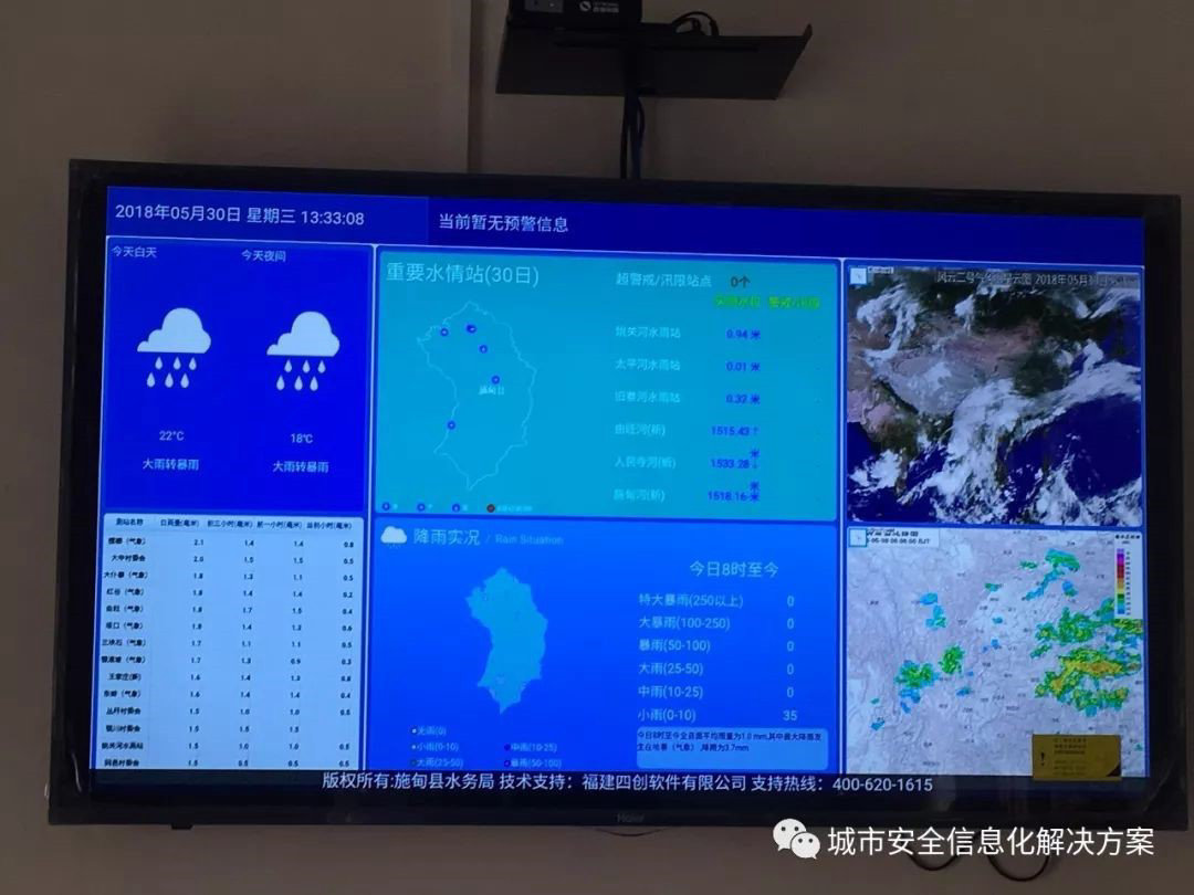 此次预警信息展播系统的建设,是为了便于基层防汛工作人员快速方便的获得辖区内例如水雨情信息,雨量站点信息,雷达云图等防汛预警产品信息,同时能够实现多样化的防汛预警信息编辑发布功能,满足施甸县防汛预警信息发布需要,进一步提高施甸县山洪防汛防御预警能力。