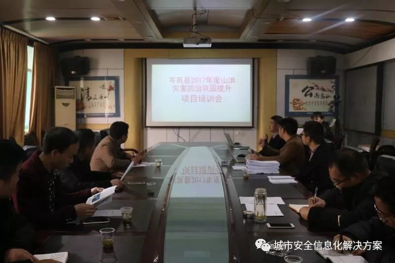 2018年1月17日上午9时,在岑巩县水务局举行项目系统培训会,我司培训人员对岑巩县三防办和五个乡镇水利站的工作人员就预警信息展播系统的硬件和软件功能进行讲解,并现场演示了县-乡视频通话功能,获得一致好评。